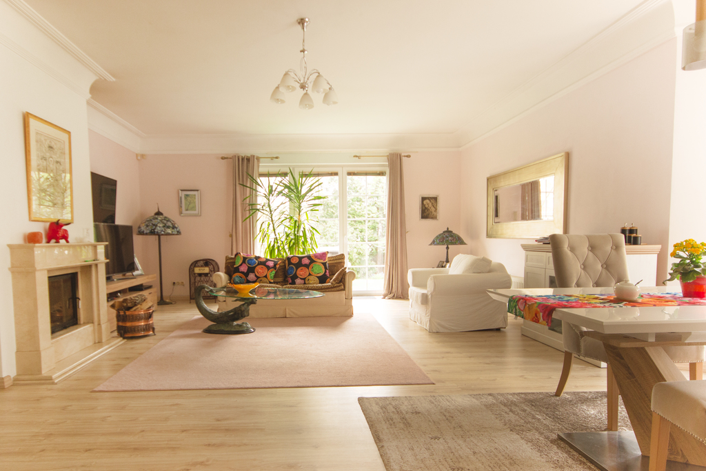Ogrzewanie gazowe własne, częściowo podłogowe w pokojach oraz kaloryfery Kominek Panele słoneczne zapewniające ciepłą wodę Piękny ogród o powierzchni około 1360m²