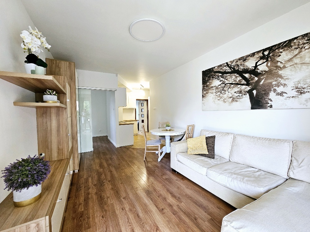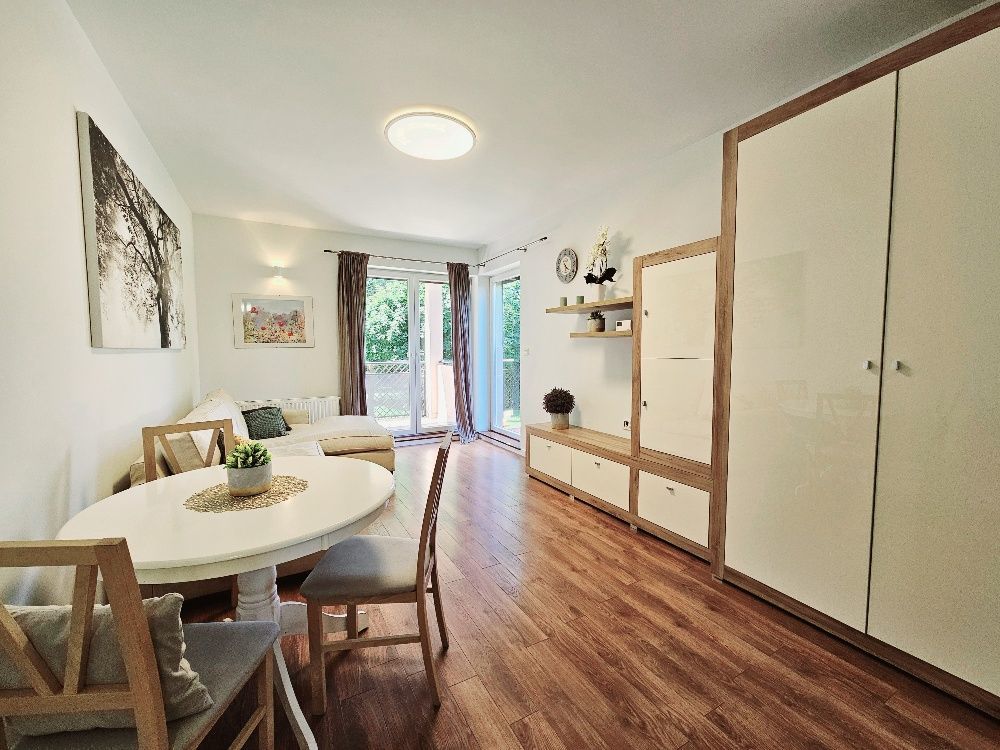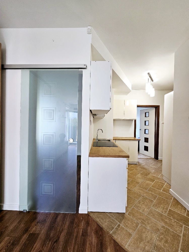 Przedmiotem oferty jest mieszkanie trzypokojowe (w księdze 2 pokoje z oddzielną kuchnią), położone na parterze budynku z 2008 r. na ul. Kopańskiego. Dużym atutem jest ogród ok 250m2, okalający z każdej strony mieszkanie. Jest to ostatni blok przy ogródkach działkowych, więc zapewniona jest cisza i spokój. Z ogrodu furtka od strony parkingu. W skład mieszkania wchodzi salon z dużym narożnym oknem, z wyjściem na balkon i na ogród; aneks kuchenny w zabudowie, ze sprzętem AGD. Mała sypialnia/gabinet ok 6m2, która pierwotnie była kuchnią. Sypialnia (14,92m2) z szafą w zabudowie i łóżkiem dwuosobowym. Łazienka (6,77m2) z oknem, z wanną, wc, pralka. W przedpokoju szafa w zabudowie. Na podłogach w salonie i gabinecie panele, w kuchni, przedpokoju i łazience płytki, w sypialni płytki pcv. Okna pcv, z roletami zewnętrznymi. Rozprowadzona instalacja alarmowa. Czynsz ok 380 zł, ogrzewanie i ciepła woda z pieca gazowego (miesięczne opłaty zimą ok 350 zł). Całe mieszkanie odświeżone, wyposażenie w cenie. Spokojna okolica, parking ogólnodostępny. Serdecznie zapraszam na prezentacje.
