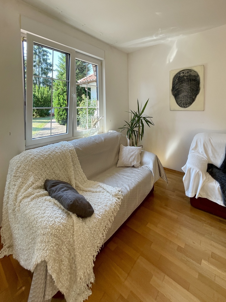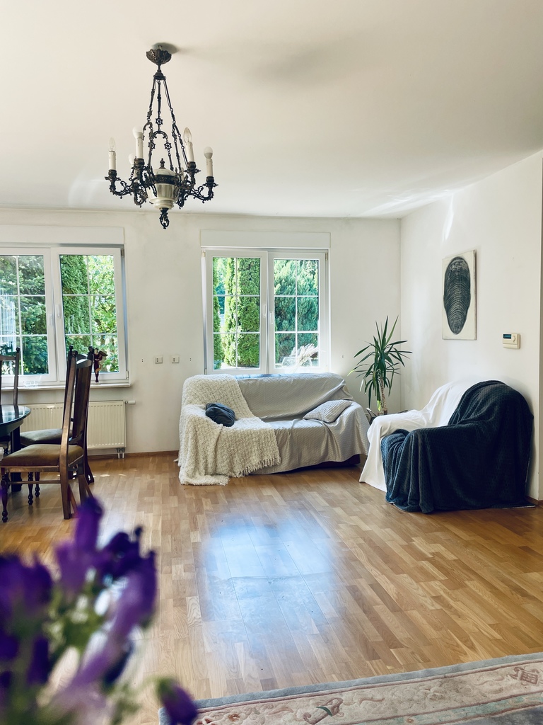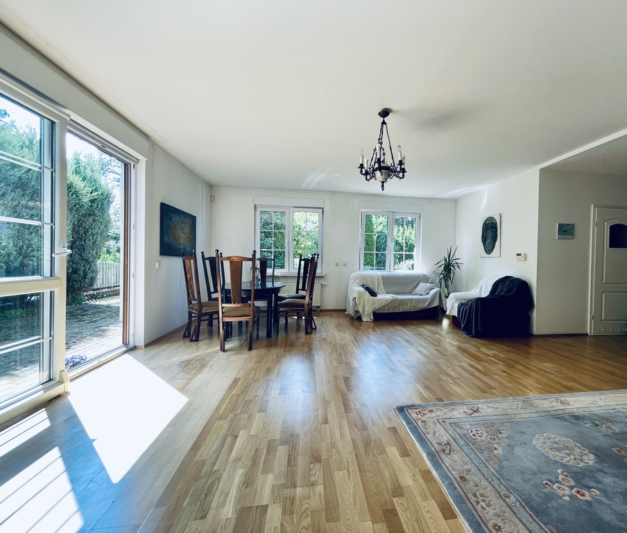 - Przestronny salon z wyjściem na ogród