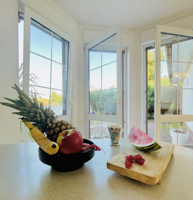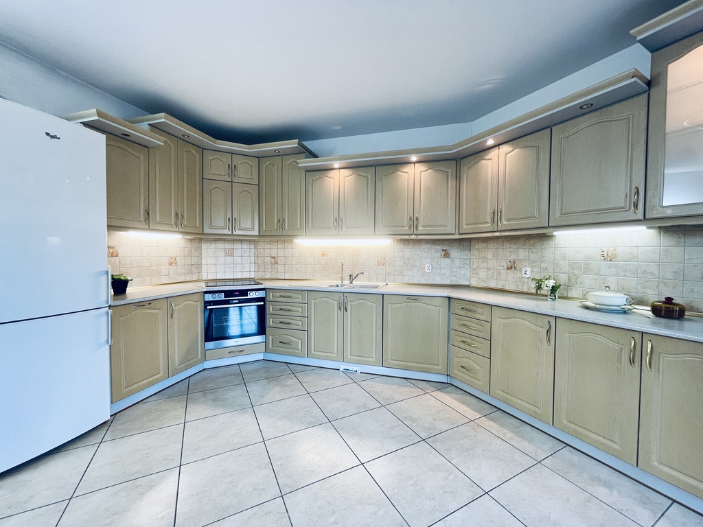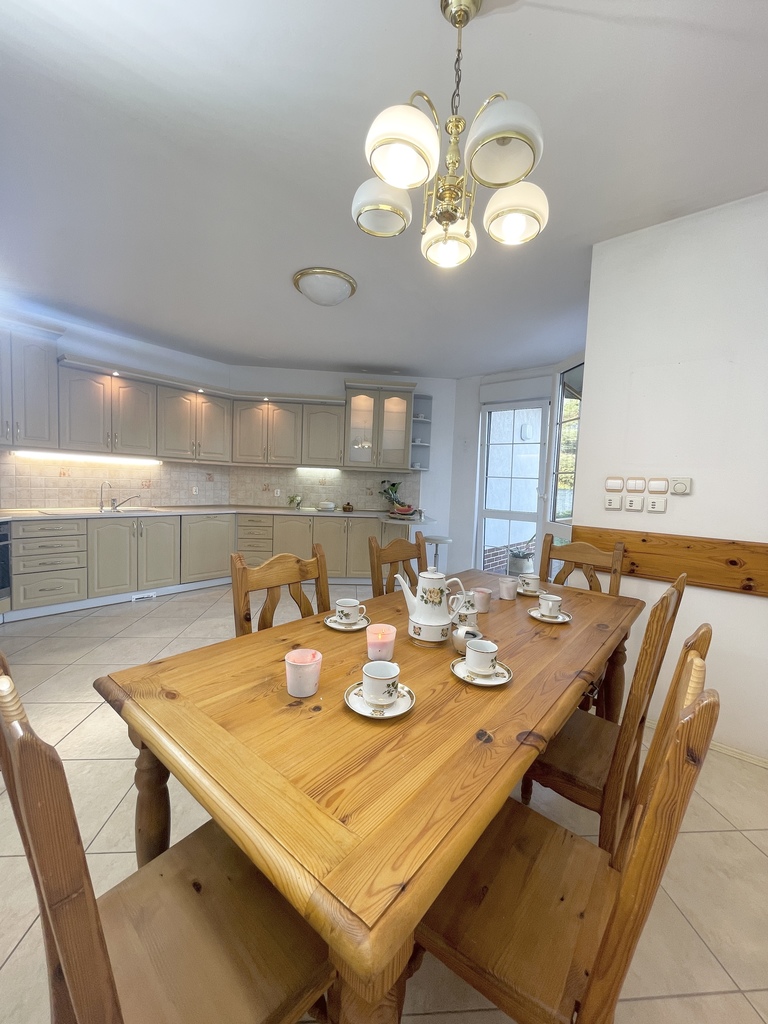 - Oddzielna kuchnia z jadalnią i wyjściem na ogród