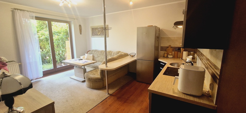 Urządzone 3 pokoje z ogródkiem oraz miejscem postojowym w garażowcu. ( W księdze wieczystej 2 pokoje)