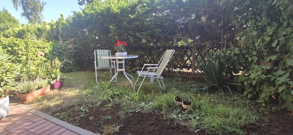 - salon z aneksem kuchennym z którego prowadzi wyjście na niewielki ogródek , dwóch sypialni, przestronnego przedpokoju, łazienki z wc oraz garderoby.