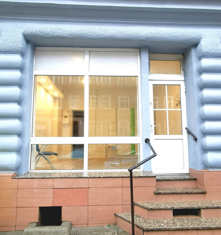 Lokal znajduje się na wysokim parterze w kamienicy, z wejściem bezpośrednio od ulicy.