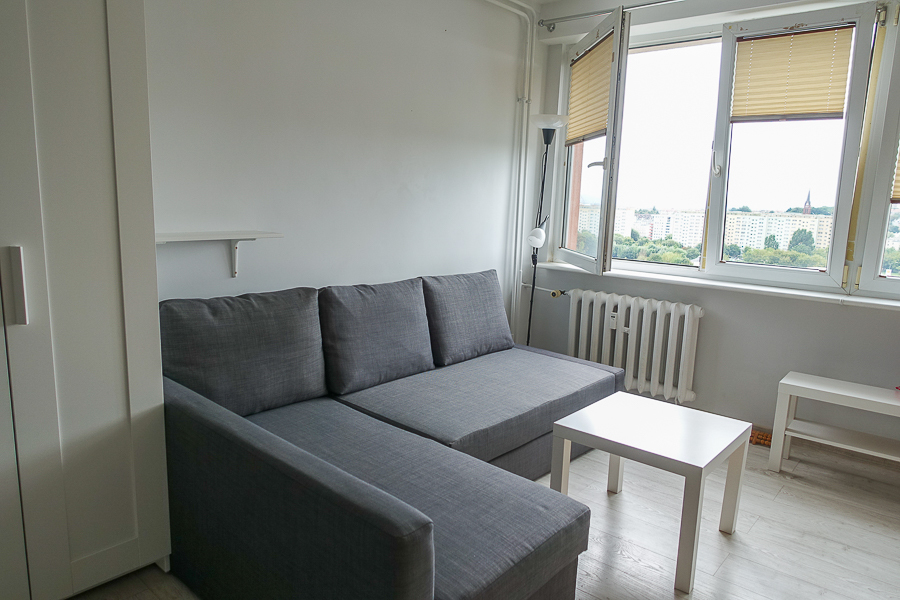 Wolne od 1 sierpnia Osiedle Piastowskie. Bardzo ładna kawalerka o powierzchni 28,6 m2 po remoncie kapitalnym. Lokalizacja ul. Rynkowa. W pobliżu 3 linie autobusowe łączące w czasie 5 minut z GALAXY przy pl. Rodła oraz w drugą stronę z Policami, Warszewem. Niedaleko ZUT Wydział Rybactwa. Nowe podłogi, gładź na ścianach, nowe drzwi wewnętrzne i wejściowe, antywłamaniowe. Pokój otwarty na kuchnię. Łazienka w nowej glazurze i terakocie z prysznicem, pralka, umywalka i WC razem. Przedpokój. W kuchni meble, nowa kuchenka gazowa z piekarnikiem elektrycznym AMICA, zlewozmywak nierdzewny jednokomorowy, nowa lodówka z zamrażarką AMICA. w pokoju nowe meble z IKEI: szafa 3 drzwiowa, stolik z krzesłami, rozkładana komoda narożna, dwuosobowa, stolik RTV, półki. W przedpokoju wieszak i komoda. Okna PCV. Budynek z lat 70 - tych. X piętro, nowe 2 windy. Czynsz 1700 zł + czynsz do spółdzielni 481 zł. Ciepła woda i ogrzewanie miejskie, zaliczki w czynszu. Dodatkowo prąd ok. 50 zł z licznika przedpłatowego i gaz ok. 19 zł miesięcznie. Możliwość internetu. Wydanie od zaraz. Kaucja 2200 zł. Oferta dla jednej osoby lub pary niepalącej.