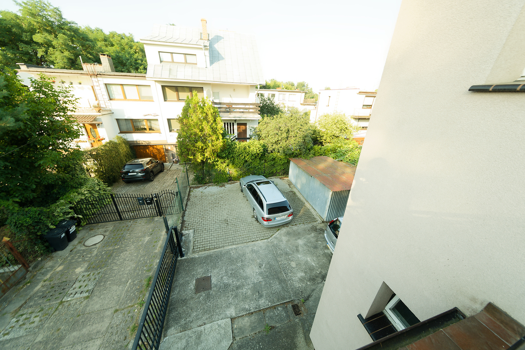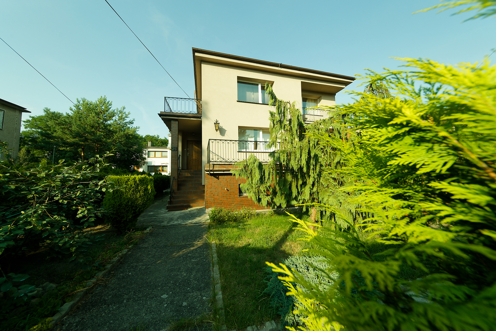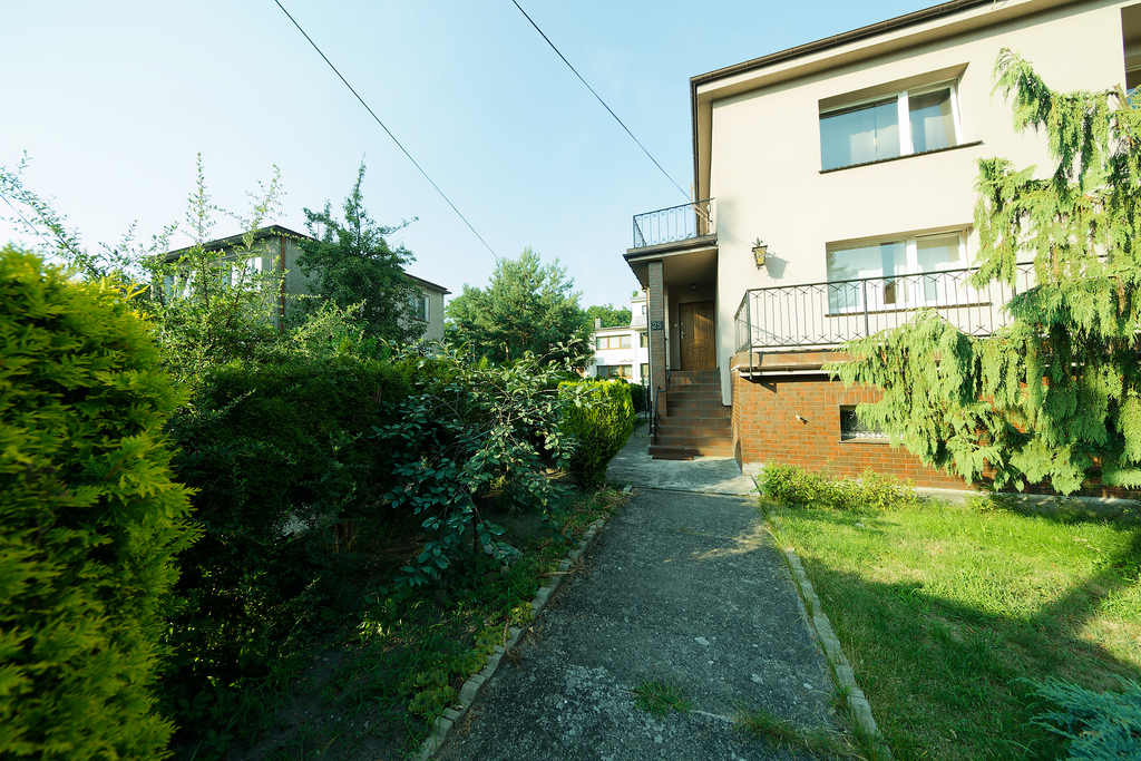 Dom znajduje się w drugiej linii zabudowy od głównej ulicy. Ulica jest cicha oraz całkowicie złożona z domów jednorodzinnych, zaledwie 3 minuty spacerem od węzła komunikacyjnego, zarówno autobusowego przy rondzie, jak i przystanku tramwajowego (przystanek Jaśminowa ZUS).