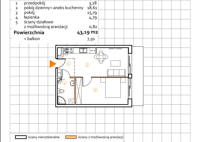 1) lokal podzielony na 2 osobne kawalerki z osobnymi wejściami, balkonami i łazienkami - 1 325 000 zł brutto