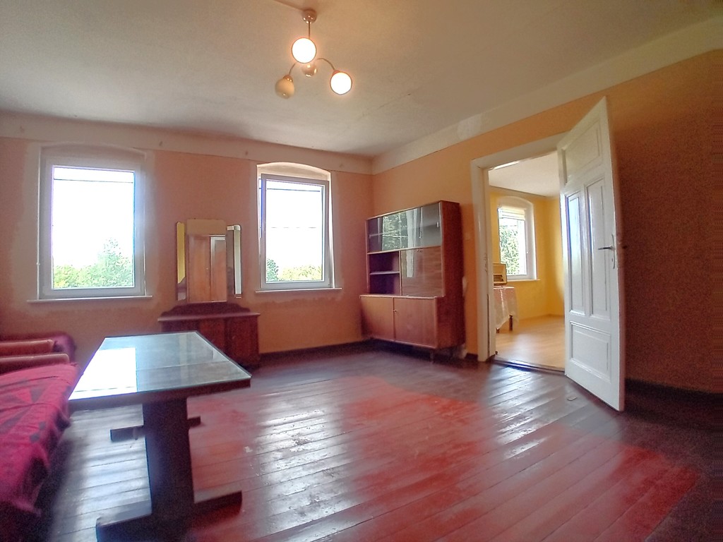 Wszystkie okna zostały wymienione na PCV. Na podłogach deski i panele.