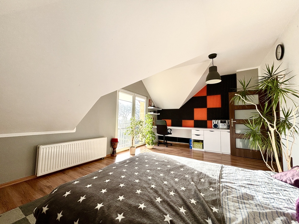 - Trzy sypialnie o pow. 13,8 m2, 18,m2 i 6,6 m2,