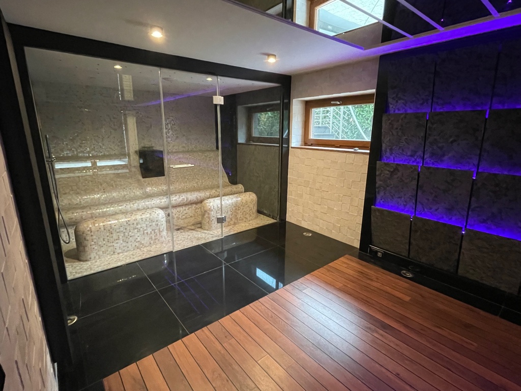 Domowe Spa, łaźnia parowa, sauna sucha, prysznice, miejsce wypoczynku (33,07m2), pralnia, suszarnia (12,52m2), kotłownia (20,39), 2xpomieszczenie gospodarcze (1,93m2) i (7,98m2), hall (8,38m2)