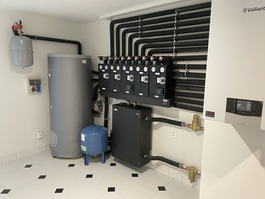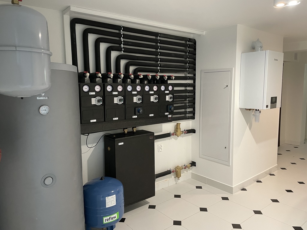 W domu został zamontowany system inteligentnego zarządzania centralnym ogrzewaniem. Pięć stref grzewczych, każdą z nich można osobno regulować za pomocą aplikacji w telefonie, bądź sterownikiem w każdym pomieszczeniu. Zmodernizowana została instalacja pionów grzewczych. Zamontowano grupy pompowe, dzięki którym ogrzewanie stało się o wiele bardziej oszczędne, ponieważ piec włącza się jedynie wtedy, kiedy wyczuje spadek temperatury na czujniku i podgrzewa tylko i wyłącznie tę strefę, gdzie spadła temperatura. Wymienione zostały m.in.: piec gazowy kondensacyjny, zasobnik na wodę 300 l.
