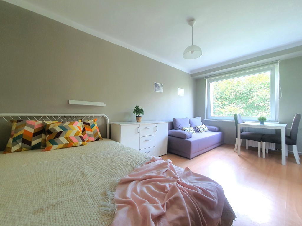 - Okna z przeciwnej strony niż ulica wychodzące na zieleń.