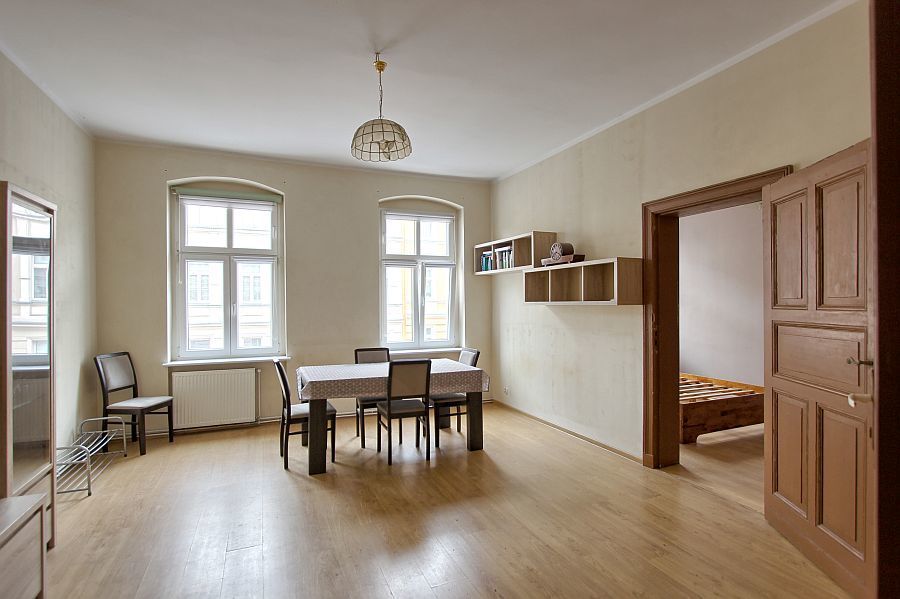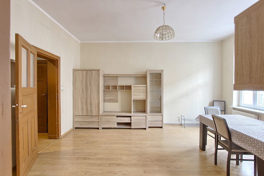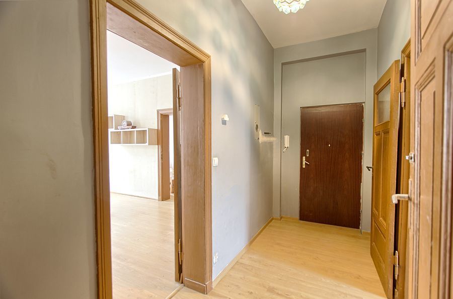 W mieszkaniu wymieniono okna na PCV, można zachować starą, drewnianą stolarkę drzwiową.