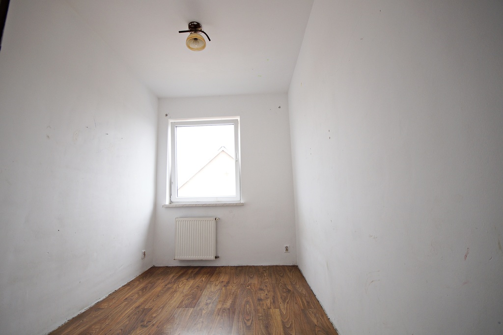 - Sypialnia 8 m2 na podłodze panele, ściany gładzone, malowane.