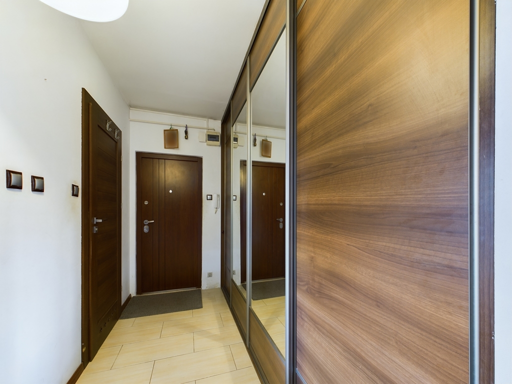 -przedpokój z dużą wnęką na szafę w zabudowie stałej typu Komandor