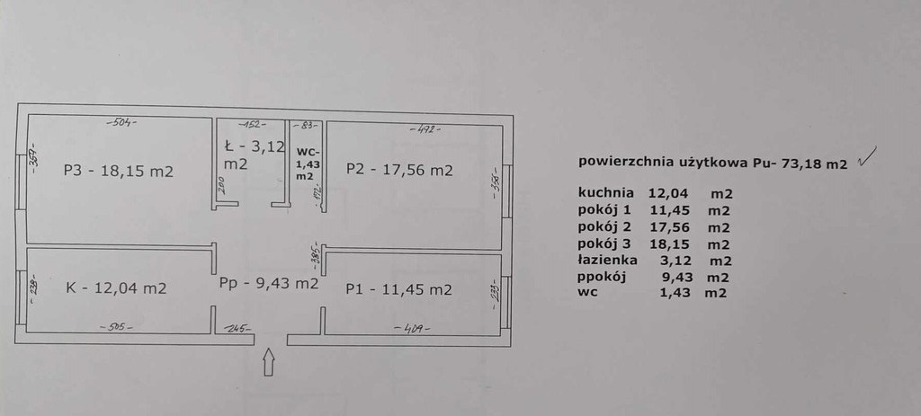 Pomieszczenia o łącznej powierzchni 73,18 m2