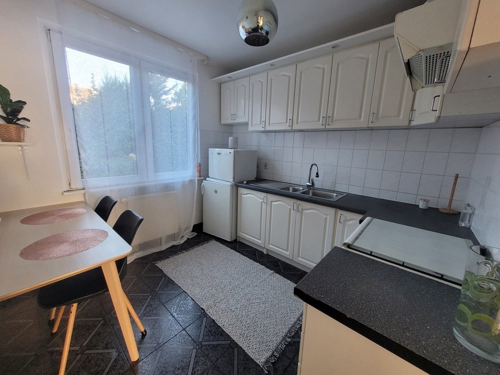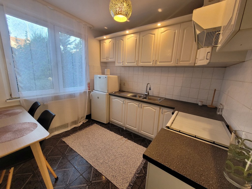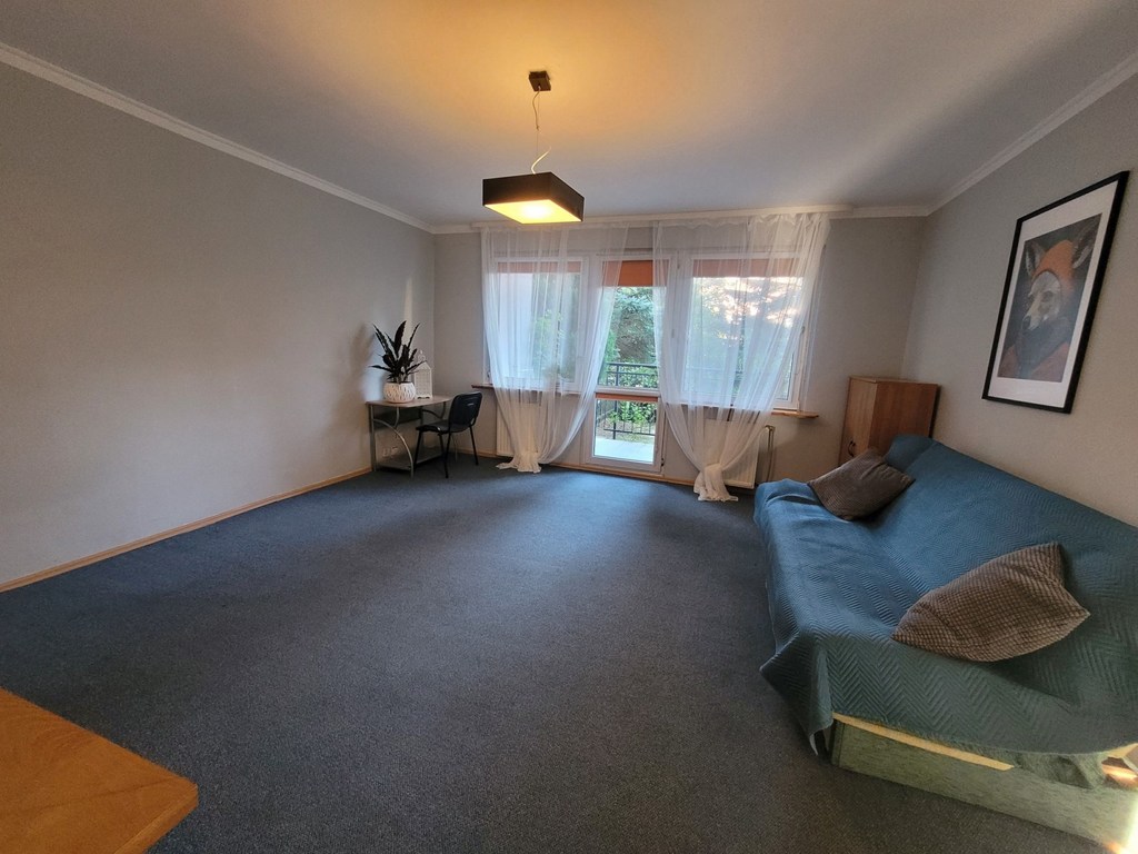 Przecław. Duże mieszkanie 2-pokojowe z ogrodem o pow. ok. 60 m2 zlokalizowane w niskim ocieplonym budynku z lat 90-tych na parterze. Mieszkanie ma powierzchnię 55,85 m2 - dwa rozkładowe pokoje o pow. 22 i 14 m2, z większego pokoju wyjście na taras i ogród (od strony zachodniej). Kuchnia z oknem na ogród o pow. ok. 12 m2, w zabudowie meble kuchenne z kuchenką gazowo-elektryczną i lodówką. Łazienka o pow. 5 m2 z kabiną, pralką, wc i umywalką w kaflach. Piec dwufunkcyjny do ogrzewania i ciepłej wody zamontowano w łazience. W mieszkaniu na podłodze terakota, jedynie w sypialni panele. Ściany gładzone malowane. Okna nowe PCV. Mieszkanie odnowione, do natychmiastowego zasiedlenia. Do mieszkania przynależy piwnica. Czynsz na 2 osoby wynosi 410 zł z zaliczką na wodę, wywóz śmieci i odprowadzenie ścieków. Mieszkanie spółdzielcze własnościowe bez księgi wieczystej. Polecam.