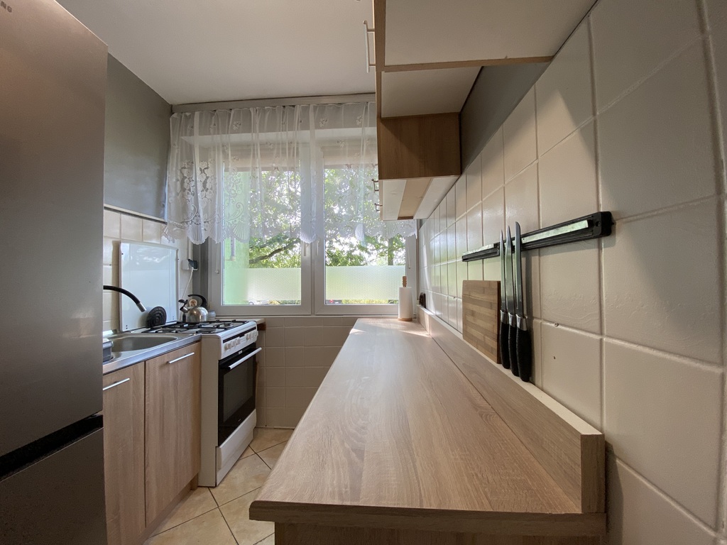 Pokoje ustawne, dobrze doświetlone. Każdy pokój zamykany na klucz. Z salonu wyjście na duży balkon. Jedna z sypialni wyposażona dodatkowo w balkon francuski. Kuchnia widna, wyposażona w nowe meble oraz nową lodówkę. Łazienka po kapitalnym remoncie, wyposażona w natrysk, WC, umywalką oraz pralką.