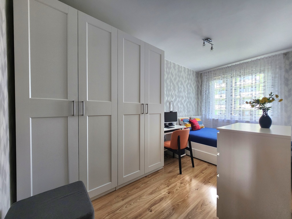 Na powierzchnię nieruchomości składają się przestronny salon o pow. ok. 22 m2 z wyjściem na spory balkon z markizą, dwie sypialnie o pow. ok. 10,5 oraz 7,5 m2, widna kuchnia, łazienka, osobne WC oraz korytarz.