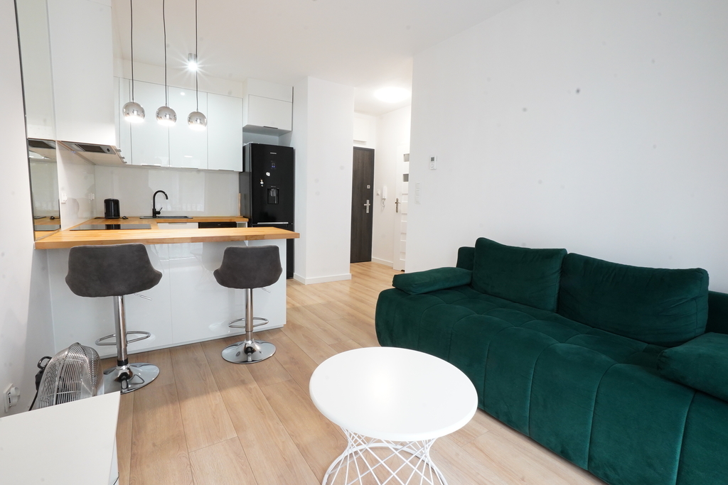 Na wynajem nowoczesne mieszkanie o powierzchni 32 m2 składające się z salonu z aneksem kuchennym, sypialni, łazienki, balkonu oraz komórki lokatorskiej. Mieszkanie umeblowane i wyposażone w najpotrzebniejsze sprzęty. Woda i ogrzewanie miejskie. Dużym atutem jest balkon oraz komórka lokatorska wliczona w cenę najmu. Apartament znajduje się na pierwszym piętrze w nowoczesnym budownictwie. W bezpośrednim sąsiedztwie liczne sklepy, komunikacja miejska - autobusy i tramwaje. Mieszkanie dostępne od zaraz!