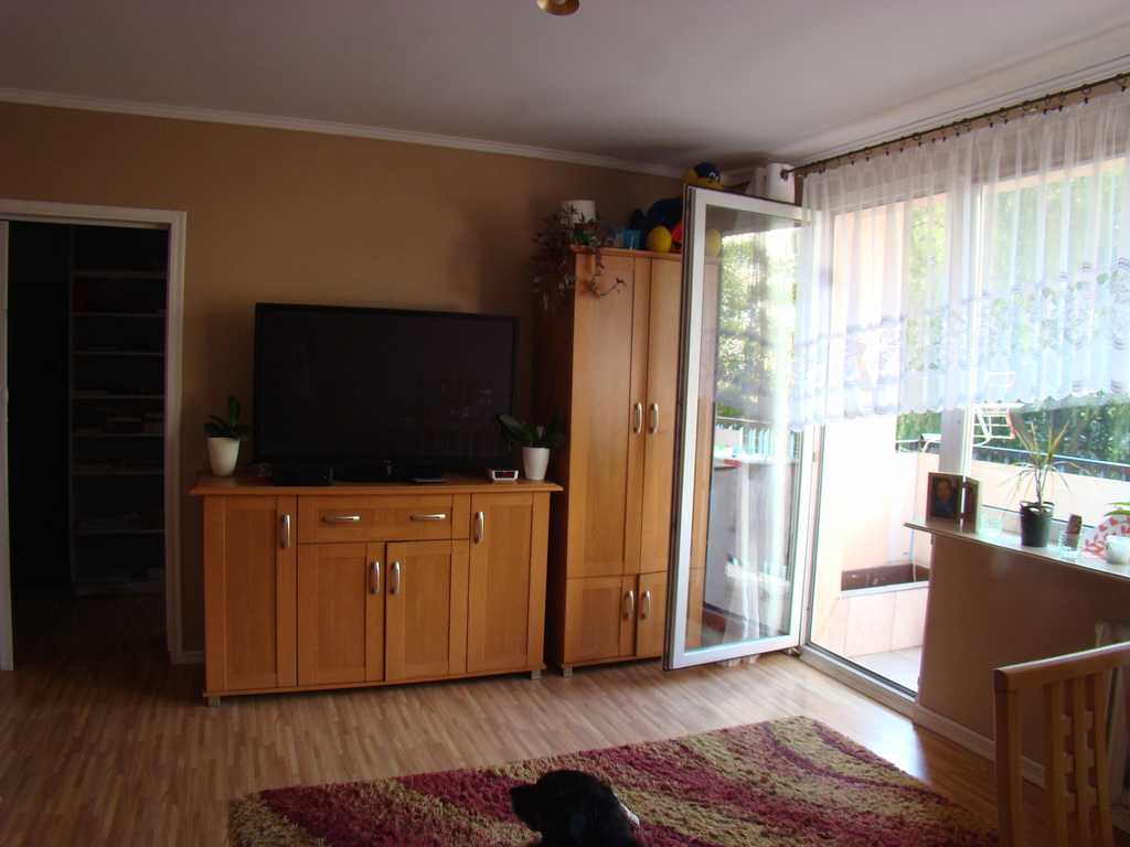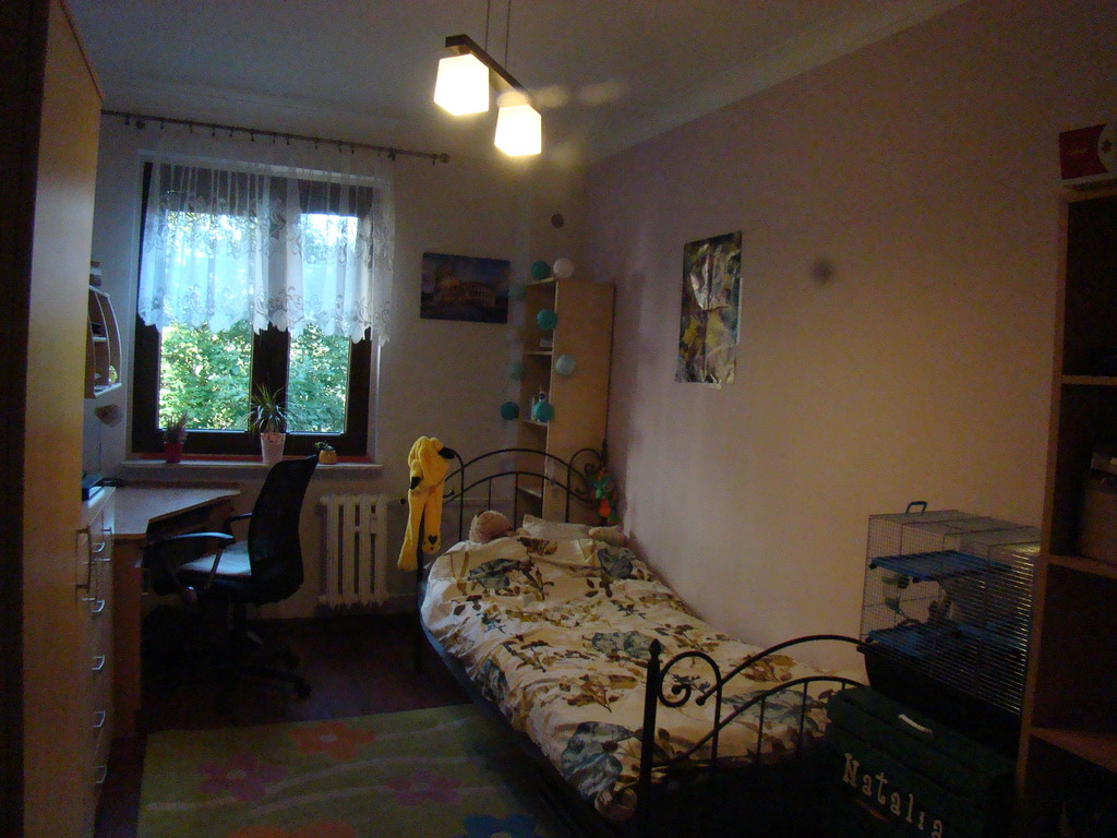 Ściany malowane, na podłodze panele, okna PCV.