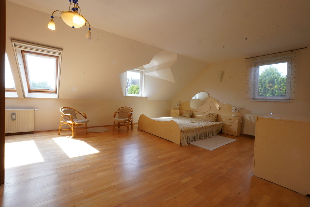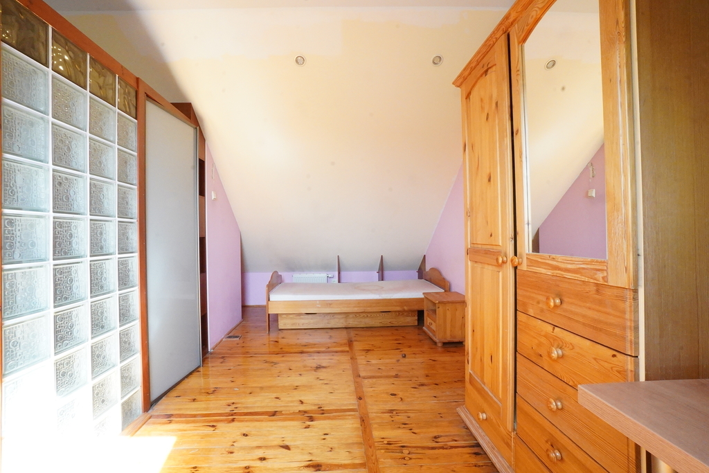- I piętro posiadające  3  sypialnie (jedna z nich posiada garderobę oraz łazienkę),