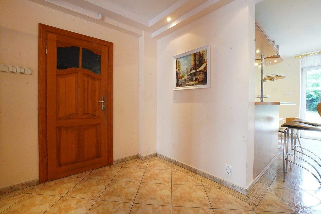 Dużym atutem jest taras z ogrodem po wschodniej stronie budynku. Dom znajduje się w cichej i spokojnej okolicy, idealnej na długie spacery.  Szybki dojazd do centrum.  W pobliżu przystanek autobusowy,  sklep Netto, ośrodek jeździecki, ośrodek sportów zimowych Gubałówka, trasy wycieczkowe po Parku Leśnym Arkońskim  m.in. Wieża Quistorpa i Dolina Siedmiu Młynów,  kompleks sportowy z boiskiem ze sztuczną nawierzchnią i torem dla rolkarzy oraz siłownia na powietrzu. W niedalekiej odległości znajduje się przedszkole oraz szkoła podstawowa.