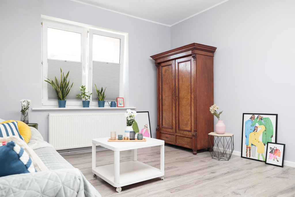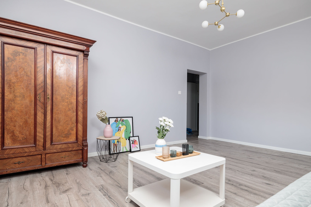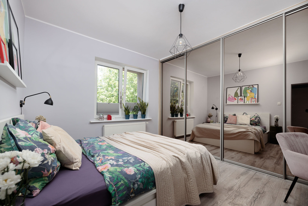 Okna wychodzą na 2 strony świata: wschód (zielone ogródki i śpiew ptaków) i zachód (ulica Jana Styki).