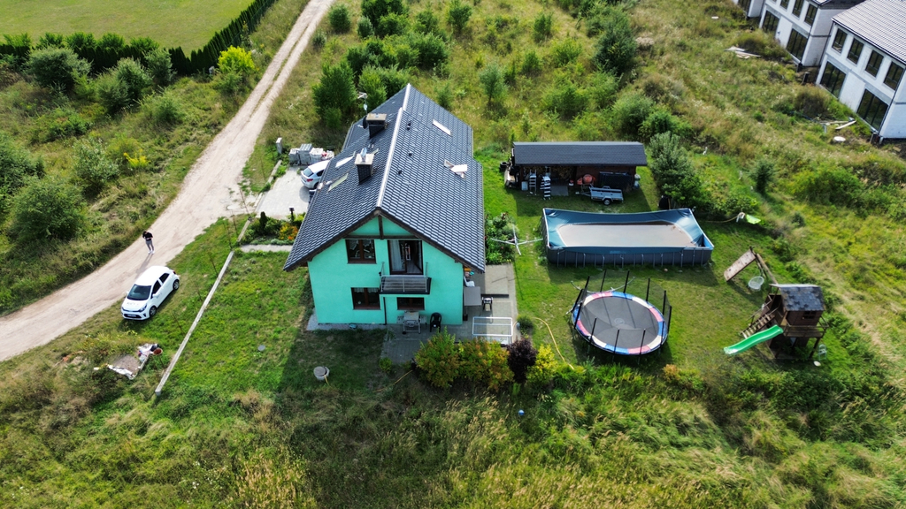 Dom usytuowany jest na działce w kształcie prostokąta o powierzchni 888 m2. Na działce znajduje się drewutnia oraz sporo miejsca do zagospodarowania.