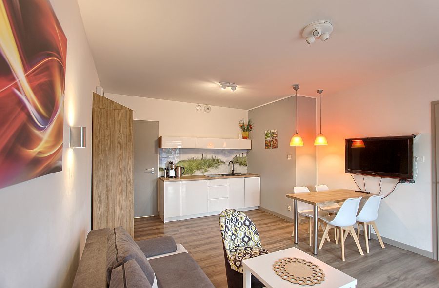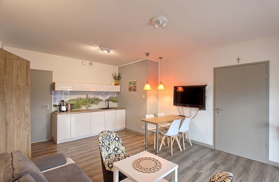 Kołobrzeg: tylko 10 km od apartamentu (ok. 12 minut jazdy samochodem) – ciesz się bliskością tętniącego życiem miasta uzdrowiskowego, z bogatą ofertą kulturalną i rekreacyjną.