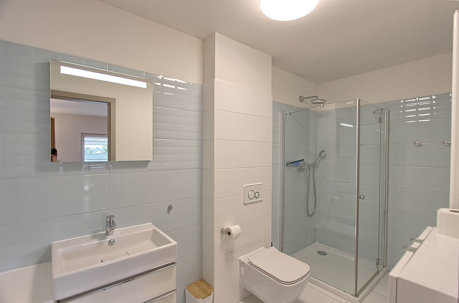 Elegancka łazienka: wykończona w wysokim standardzie.