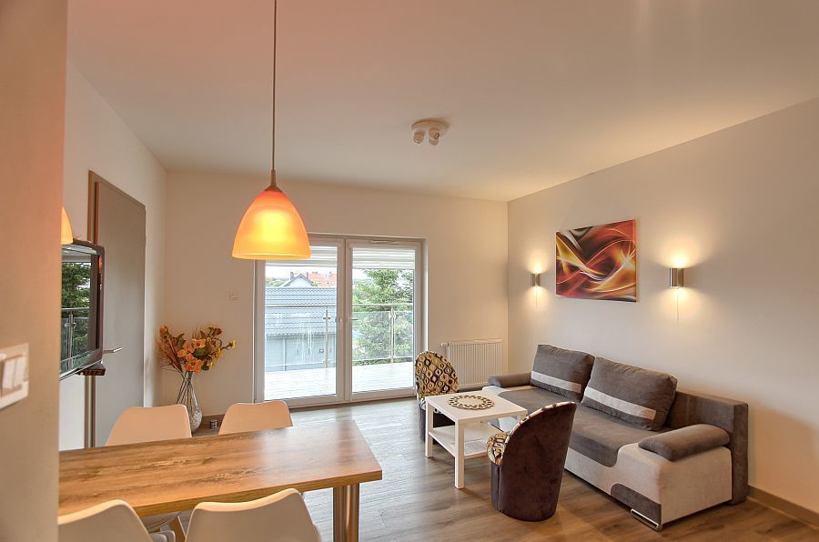 Dostęp do prywatnego kompleksu basenowego: w cenie apartamentu dostęp do krytego basenu, brodzika dla dzieci oraz strefy SPA (jacuzzi, sauna sucha, mokra, grota solna).