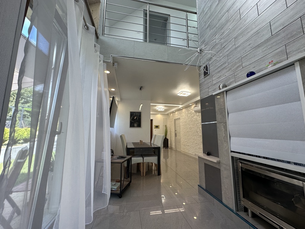 - obszerny salon z kominkiem w otwartej formie z wyjściem na taras