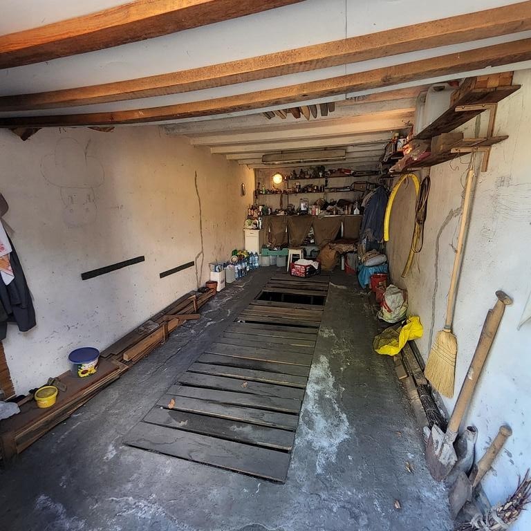 Na sprzedaż murowany garaż o powierzchni ok 18m2. Wjazd do garażu przez drewnianą bramę o rozmiarze: wysokość 215cm, szerokość 274cm. Wewnątrz znajduje się kanał ( h-152, szer ok. 100cm). Do garażu doprowadzony jest prąd. Obiekt posadowiony pośród innych garaży murowanych.