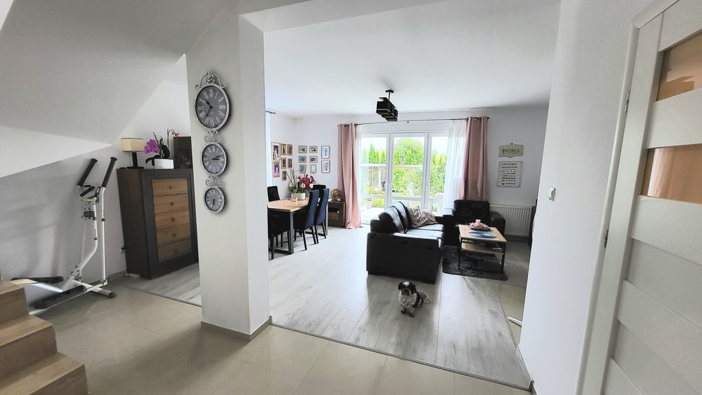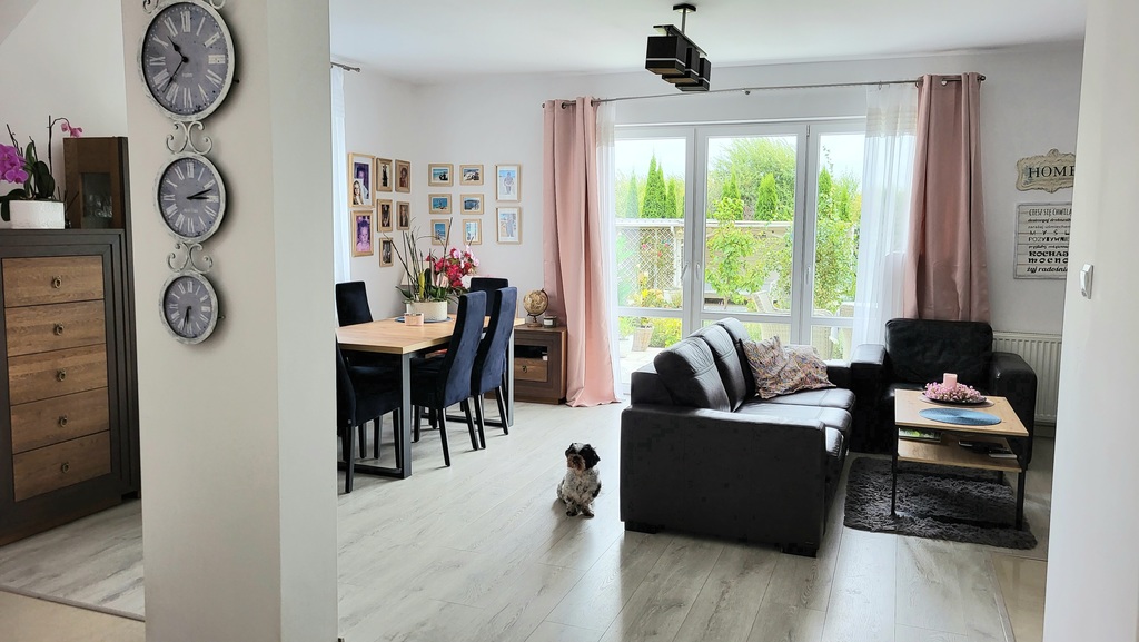 Serdecznie zapraszam Państwa do zamieszkania w 4 pokojowym, przytulnym, oraz bardzo funkcjonalnym domu w zabudowie bliźniaczej o powierzchni 135,4 m2. Znajduje się on na zamkniętym, bezpiecznym osiedlu domów bliźniaczych na Mierzynie. Ekspozycja okien na dwie strony świata zapewnia idealne doświetlenie (południe - wschód). Dom został wybudowany w 2012 roku, osiedle gwarantuje bezpieczeństwo mieszkańcom. Dom posiada 3 miejsca postojowe oraz garaż w bryle budynku. Dodatkowo dwie szopki narzędziowe na ogrodzie oraz utrzymane w klimacie śródziemnomorskim patio i taras przyległy bezpośrednio do wyjścia z salonu.