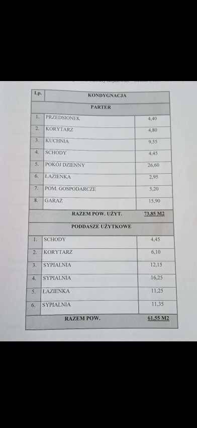 Razem powierzchnia użytkowa: 61,55 m2
