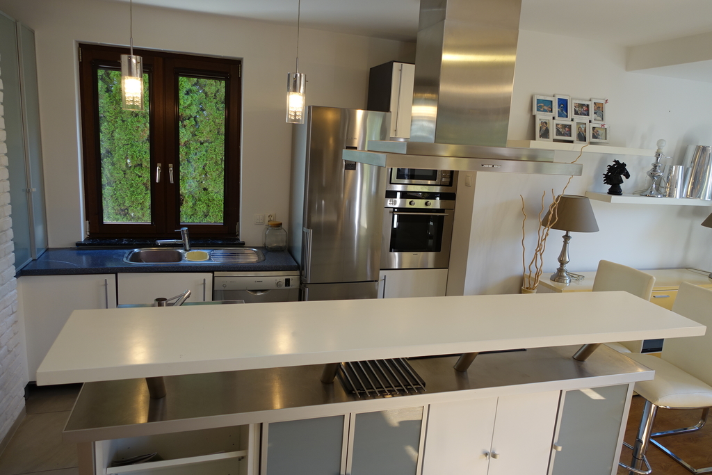 A perfectly located new detached house in Mierzyn built in an intimate location from high quality materials in 1999. Quick delivery date. Living room with fireplace, kitchen with dining room, 3 bedrooms, bathroom, toilet, vestibule and garage. High quality materials were used for construction. Porotherm, roof covered with tiles. Wooden windows, roof windows in the attic. Anti-burglary external doors. House insulated with polystyrene, plastered. Solar panels installed on the roof. Furnished, kitchen with built-in furniture and appliances. Plot area 502 m2. Usable area 120 m2, total area 150 m2. Garage for 1 car in the body of the building. Windows equipped with automatic roller shutters. HOUSE DESCRIPTION: GROUND FLOOR: living room with bright kitchen and dining room approx. 55 m2, hall approx. 8 m2, toilet 3 m2, vestibule 2.5 m2, boiler room with garage approx. 24 m2. From the living room exit to the terrace and garden. Panels and terracotta on the floors. Built-in kitchen furniture with Siemens and Bosch household appliances: fridge with freezer, 60 cm dishwasher, ceramic hob, oven. In the garden there is a gazebo, barbecue area and a round swimming pool with heated water with a diameter of 5.5 m. FIRST FLOOR: 3 bedrooms with, among others, skylights, bathroom 12.5 m2 with bathtub, shower cubicle, toilet and bidet and washbasin. Large balcony with an area of 12 m2. Comfortable, wide stairs between floors. Water and sewage installations have been brought to the building. Heating and hot water from a gas furnace and photovoltaics. Windows overlook distant properties and greenery. Area in front of the building paved with cobblestones. Fence with remote-controlled gate. Location close to exit to the border.