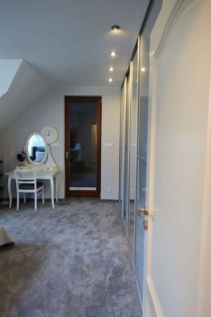 PIĘTRO: 3 sypialnie z m.in. oknami połaciowymi, łazienka 12,5 m2 m2 z wanną, kabiną prysznicową, wc oraz bidet i umywalka.
