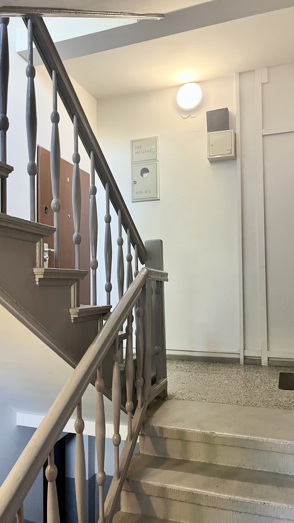 Klatka schodowa po remoncie. Wszystkie instalacje wymienione.