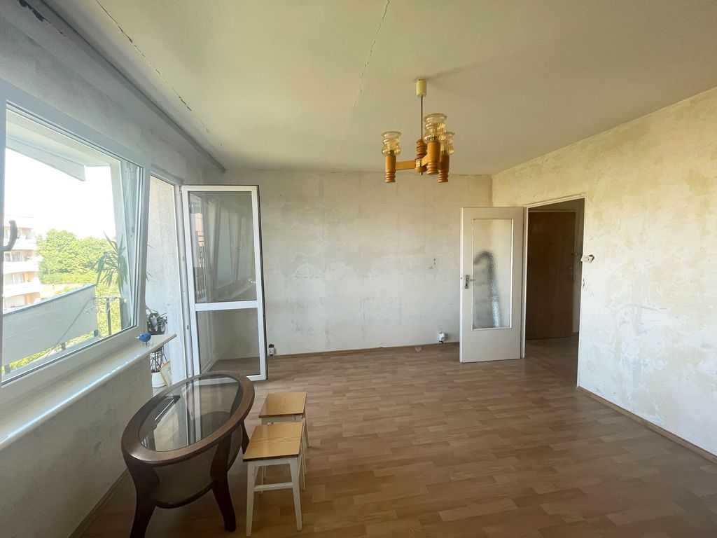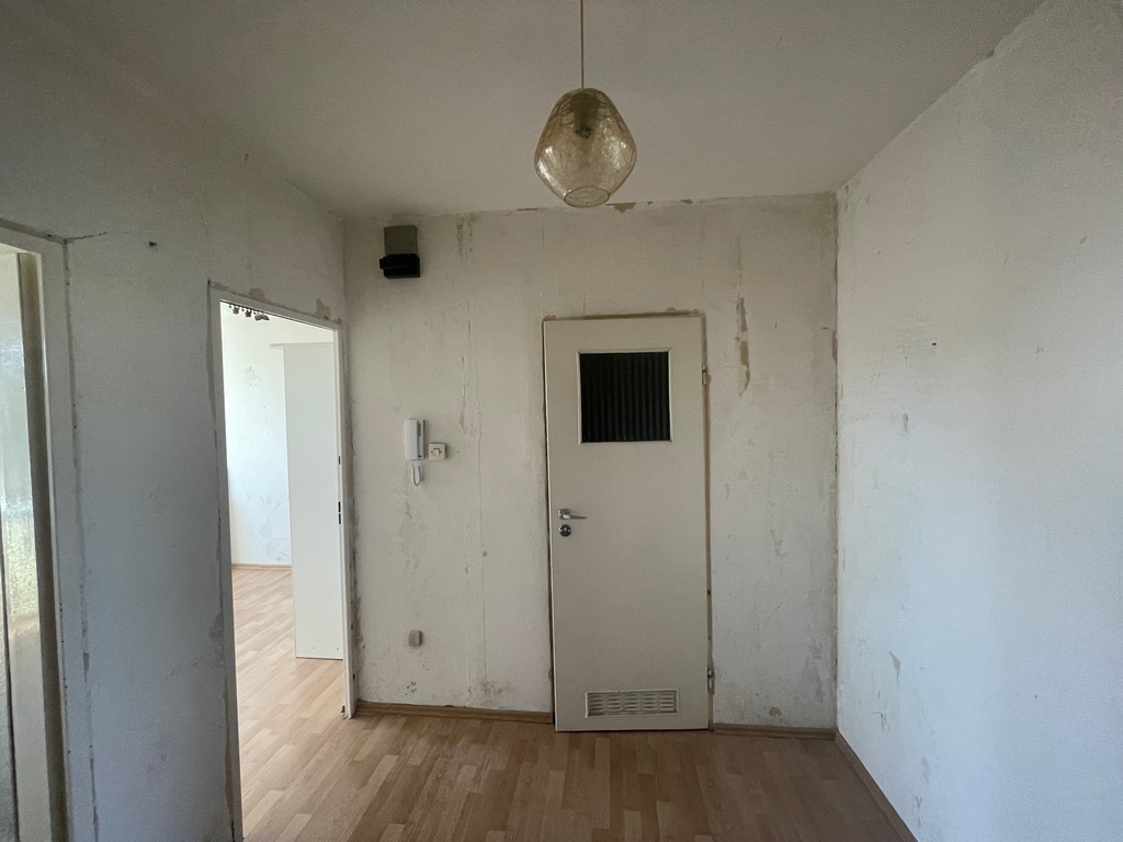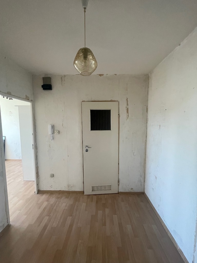 STAN: Mieszkanie przygotowane do remontu, ze ścian zdjęte zostały tapety.