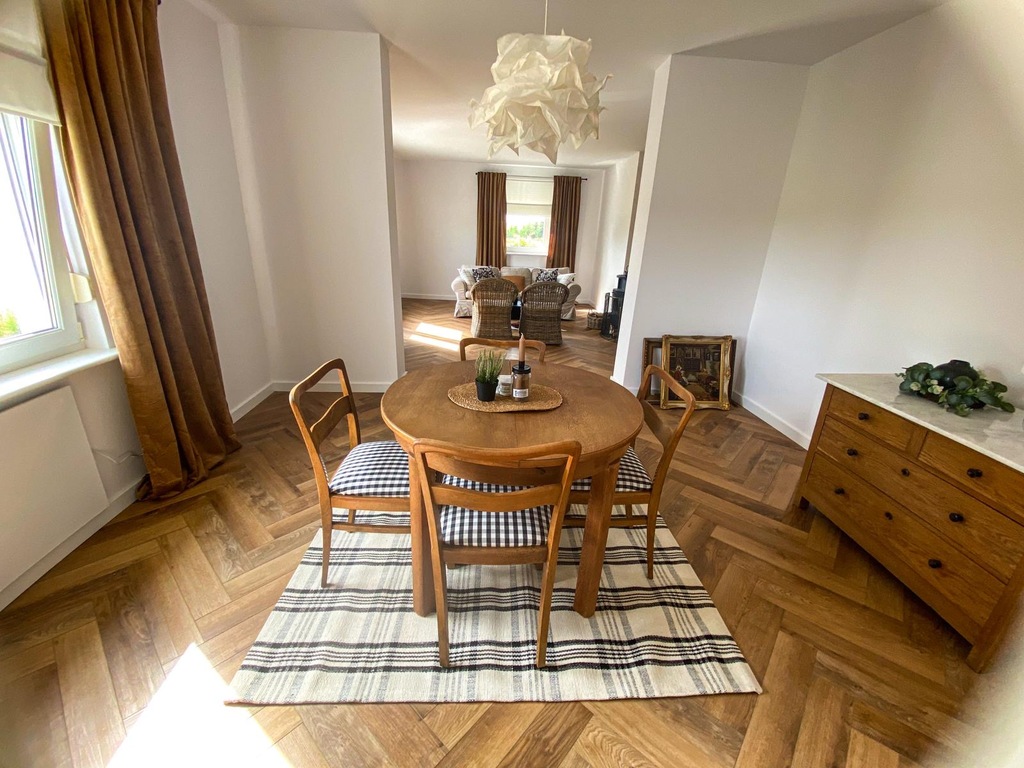 Pięknie zmodernizowany dom jednorodzinny w Bismark w bardzo spokojnej okolicy. Dom ten został wybudowany w 1961 roku z drewna, na podpiwniczeniu z cegły. Dom został zmodernizowany w 2024 roku, wszystkie faktury do wglądu. Na parterze domu znajduje się duży salon z kominkiem, tutaj znajdziesz miejsce na stół jadalny i wygodną kanapę przy kominku. Do dyspozycji Gości jest także kuchnia z wyposażoną kuchnią, łazienka z prysznicem i ogrzewaniem podłogowym oraz sypialnia. Na poddaszu znajdują się 2 pokoje dziecięce, toaleta oraz pomieszczenie gospodarcze. W piwnicy znajduje się pralnia oraz mnóstwo miejsca na pokój hobbystyczny, spiżarnię czy skład drewna. Na działce znajduje się budynek gospodarczy z garażem i miejscem na dodatkowy schowek. W ogrodzie rośnie wiele drzew owocowych i piękny orzech włoski. Tutaj możesz cieszyć się wieczorem przy śpiewie ptaków.
