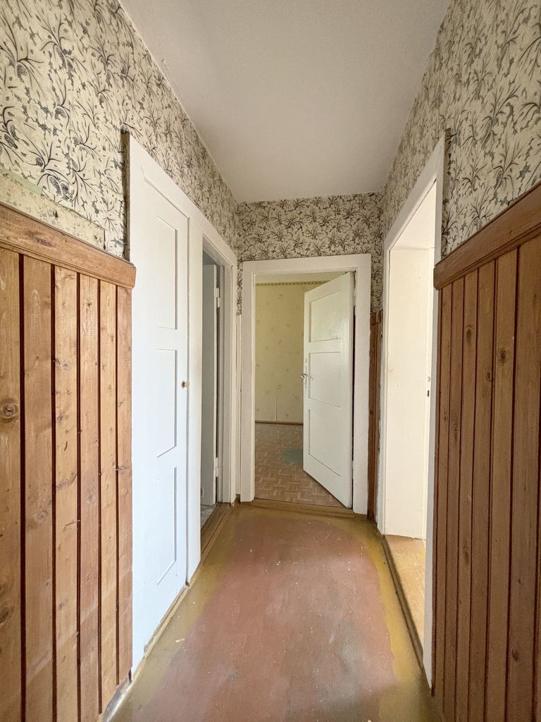 Mieszkanie do remontu, na podłogach linoleum, ściany tapetowane, okna PCV.