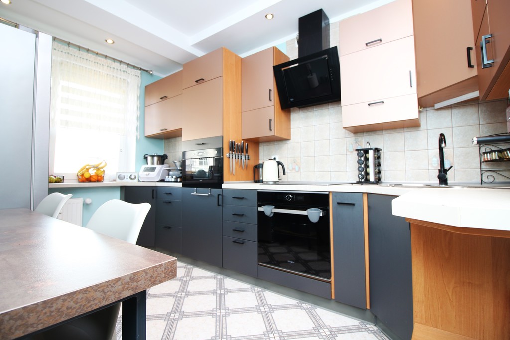 - kuchnia w zabudowie na wymiar, wykonana materiałami bardzo dobrej jakości wraz ze sprzętami AGD: kuchenka elektryczna, płyta indukcyjna, okap, mikrofalówka, lodówka, zmywarka.