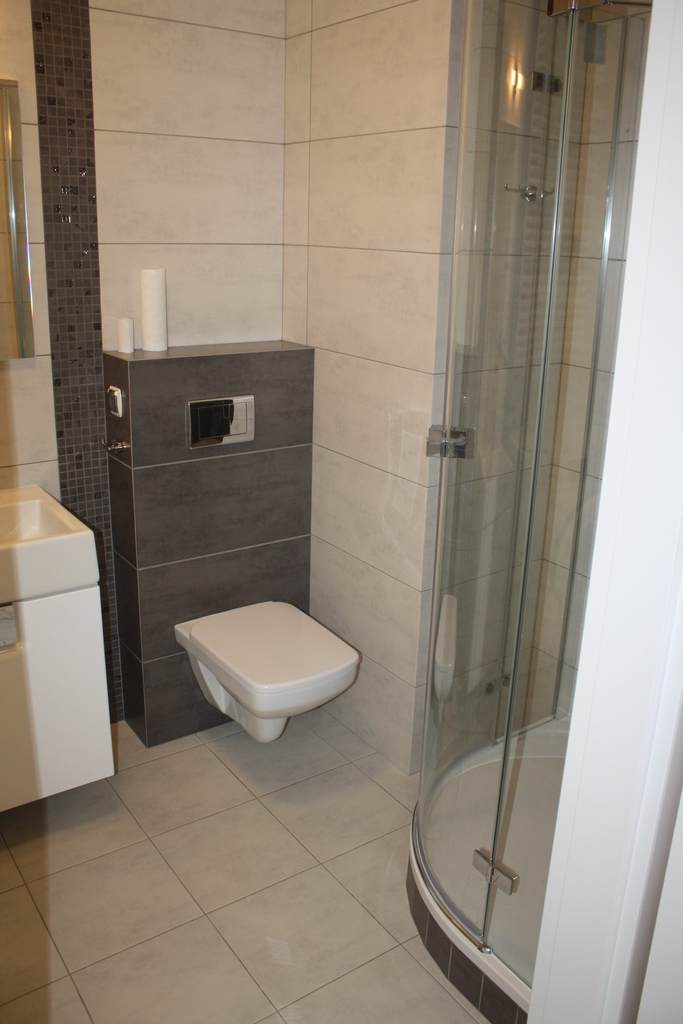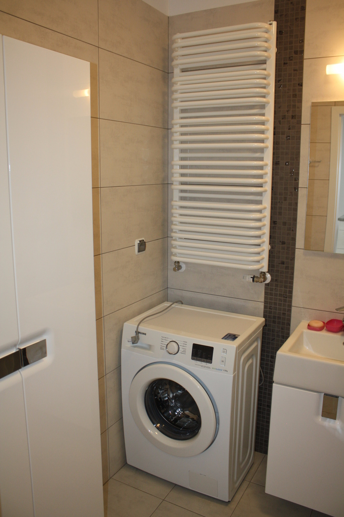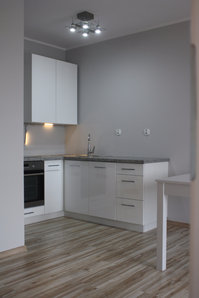 Mieszkanie jest wykończone w nowoczesnym stylu, w pełni umeblowane i wyposażone (pralka, lodówka, kuchenka z piekarnikiem, zmywarka).