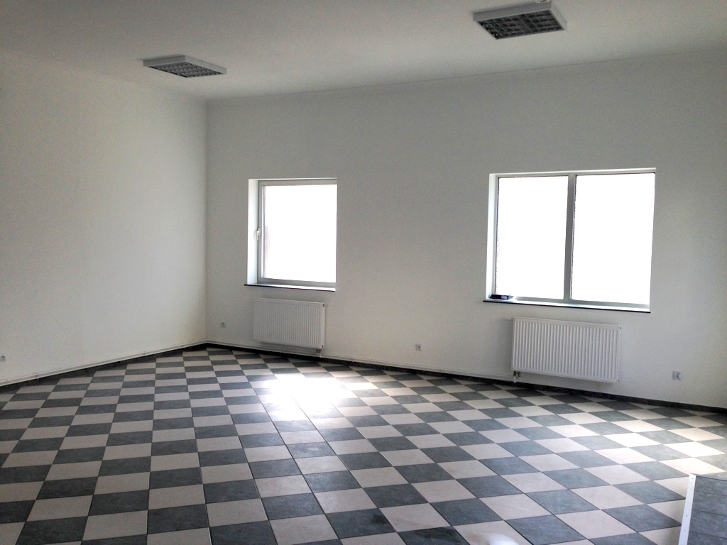 Stolarka okienna wykonana jest z aluminium, a lokal jest wyposażony w oświetlenie jarzeniowe oraz instalację alarmową.