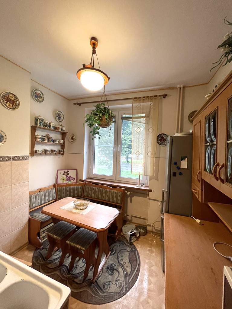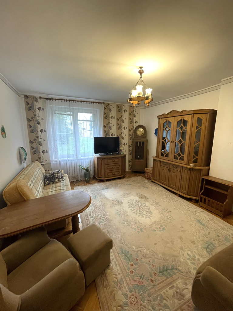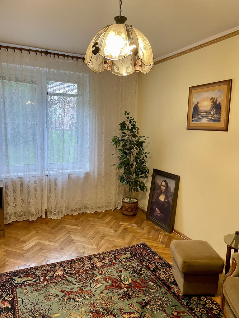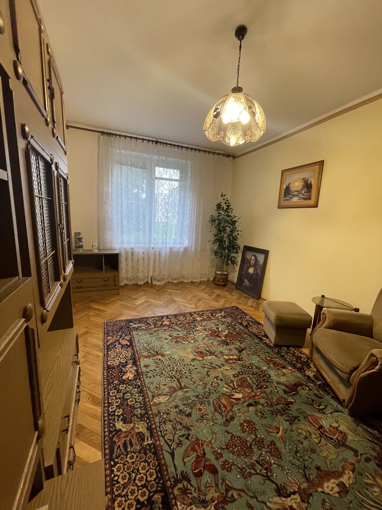Mieszkanie składa się z trzech pokoi rozkładowych  w tym, kuchni, łazienki z WC oraz przedpokoju o łącznej powierzchni użytkowej 66m^2. Łazienka po wymianie instalacji . Na podłodze deska. Do mieszkania przynależy piwnica o pow 7,86 m^2