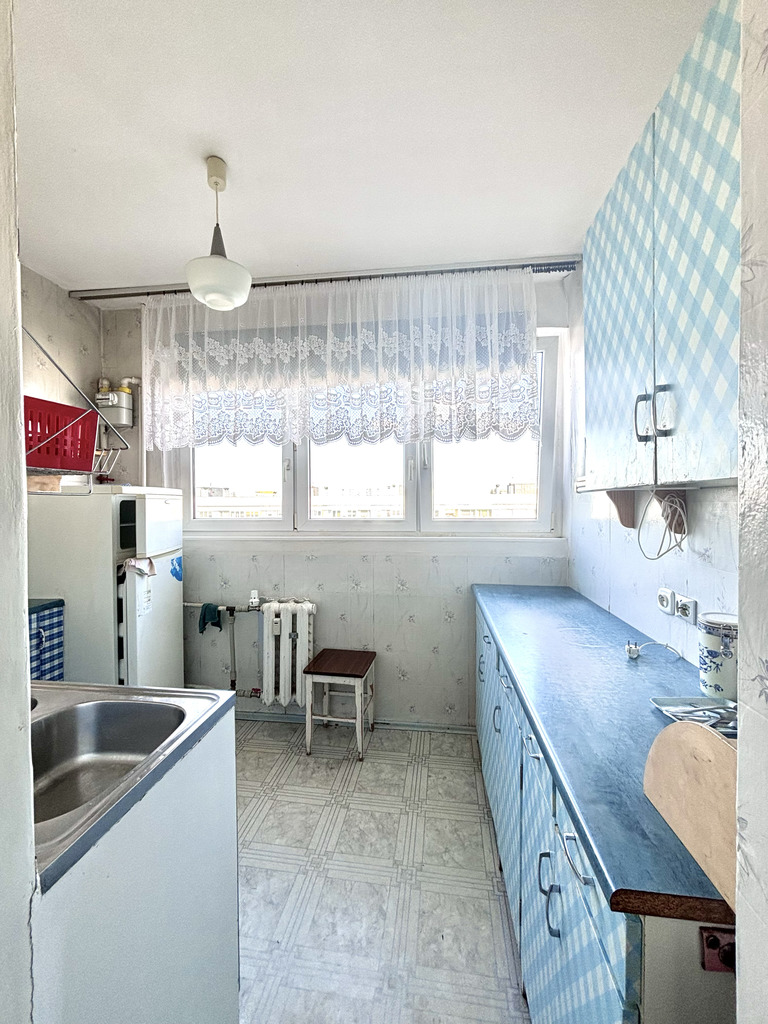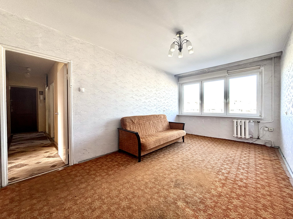 Na sprzedaż 3 pokojowe mieszkanie usytuowane na 8 piętrze wysokiego bloku z 1970 roku, w cichej cześci os. Przyjaźni.