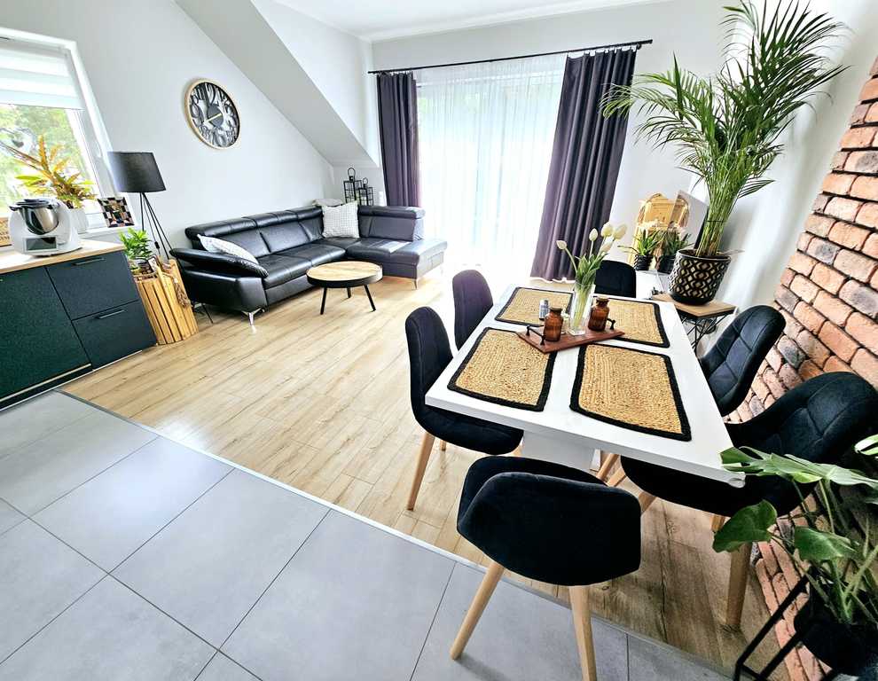 Oferujemy do sprzedaży jasne, słoneczne i przestronne - 3 pokojowe mieszkanie, usytuowane na drugim pietrze nowoczesnego, niskiego bloku z 2021 roku, znajdujące się na zamkniętym osiedlu w bezpośrednim sąsiedztwie Puszczy Wkrzańskiej, w bardzo atrakcyjnej lokalizacji Polic. Na powierzchnię 68,53 m2 lokalu, składają się otwarta kuchnia z salonem i wyjściem na zaaranżowany balkon, dwie sypialnie, łazienka z WC oraz przedpokój. Mieszkanie jest bardzo ciepłe i słoneczne. Standard lokalu - wysoki, a wszystkie wykończenia - podłogi, ściany, sufity, umeblowanie - całość wykończona materiałami wyłącznie wysokiej jakości. Mieszkanie zaprojektowano w bardzo przemyślany sposób. W łazience zainstalowano ogrzewanie podłogowe. W cenie mieszkania pozostają wszystkie zabudowy, dodatkowo wyposażenie łazienki wraz z pralką oraz łóżko sypialniane (jeszcze do indywidualnego ustalenia). Do mieszkania przynależy także i piwnica. Ogrzewanie i ciepła woda z sieci miejskiej. Doskonała lokalizacja, bezpośrednia bliskość Puszczy Wkrzańskiej i terenów zielonych, cicha i spokojna okolica. Nieruchomość bardzo dobrze skomunikowana, bliskość przystanków autobusowych, zapewniająca bezproblemowe korzystanie ze środków komunikacji miejskiej. Czynsz wraz z zaliczką na ciepłą i zimną wodę, ogrzewanie, wywóz śmieci, eksploatację, sprzątanie oraz na fundusz remontowy - wynosi około 650 zł miesięcznie (na 4 osobową rodzinę).