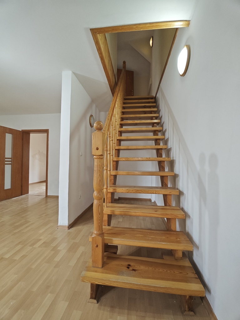 Na parterze znajdują się dwa przytulne pokoje, funkcjonalna kuchnia z bezpośrednim wyjściem na podwórko, łazienka, oddzielne WC oraz przedpokój. To idealne miejsce dla rodziny, która ceni komfort i funkcjonalność.