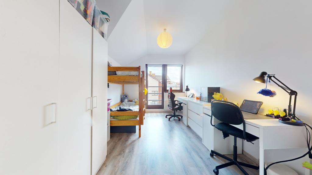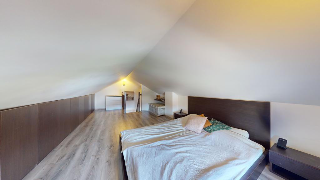 Na drugim poziomie znajduje się antresola, która została zaadaptowana na sypialnię. W najwyższym punkcie wysokość jest 1,80m .