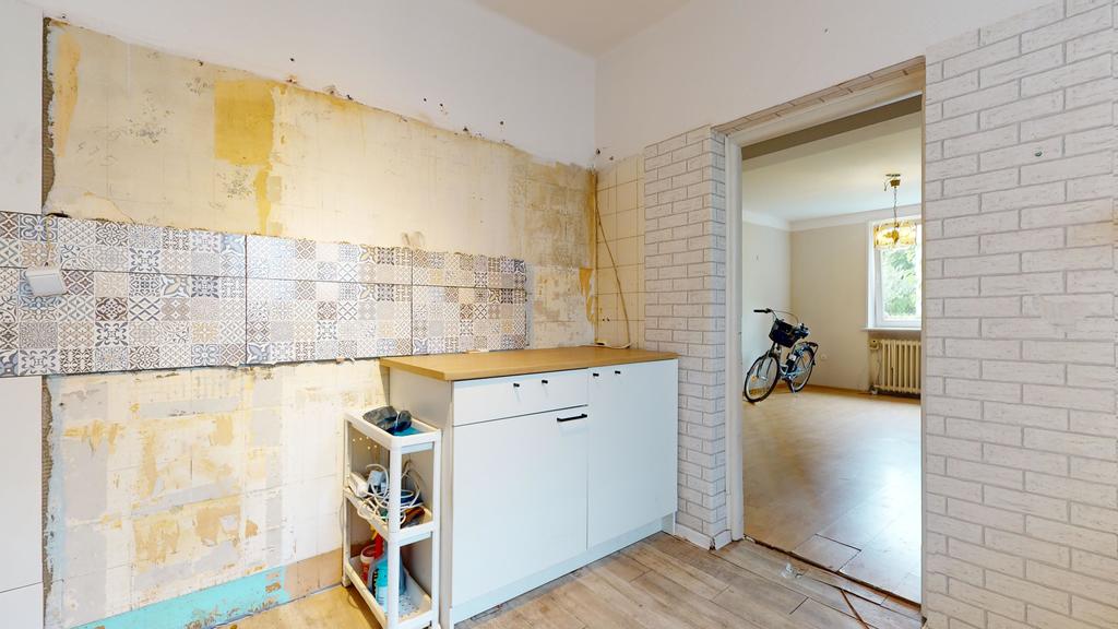 korytarza, łazienki, klatki schodowej, przejściowej kuchni oraz salonu.